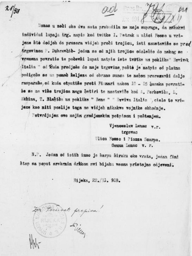 Ovaj popis šteta je zajedno s popisom izbjeglica objavljen u knjizi „Izbjeglice i štete za D’Annunzijeva režima 1919.-1921.“ u izdanju Državnog arhiva u Rijeci i Hrvatskog državnog arhiva u Zagrebu. No iako je od objave ove knjige prošla gotovo čitava godina ona još uvijek nije predstavljena široj riječkoj javnosti, a na stranicama Državnog arhiva u Rijeci nećete pronaći nikakav podatak da ova knjiga uopće postoji.